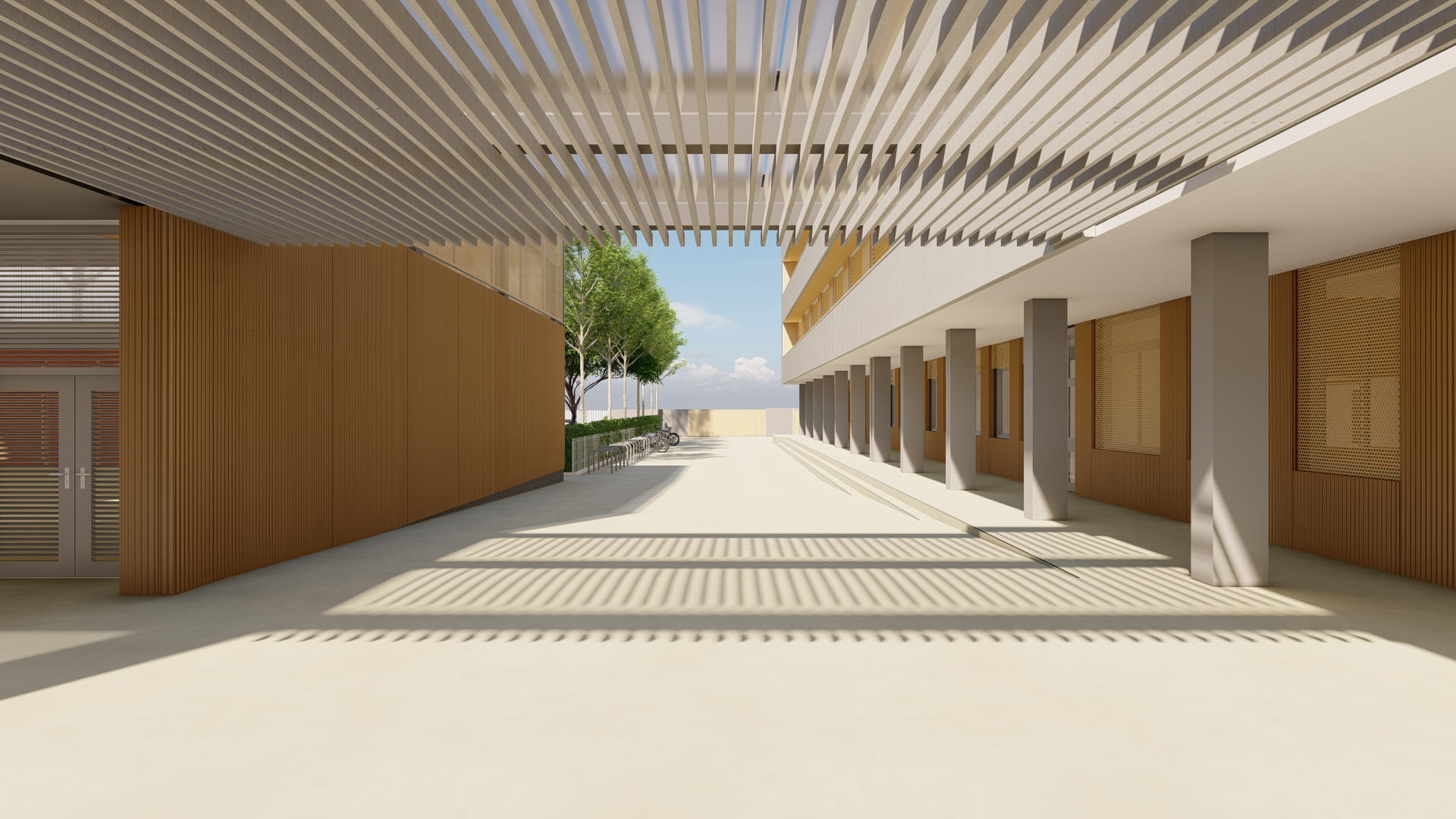 En las zonas exteriores del nuevo IES habrá porche cubierto, dos pistas polideportivas, zona de juegos, huerto, área de estacionamiento para el profesorado, zona ajardinada y una reserva de unos 960 metros cuadrados para futuras ampliaciones. El nuevo IES de Soliva contará, además, con una instalación de bioclimatización mediante refrigeración adiabática. Se trata de un sistema ecológico de climatización, alternativo al aire acondicionado convencional, que reduce la temperatura interior de las aulas mediante la evaporación de agua. Este sistema irá apoyado, además, por la instalación de placas solares fotovoltaicas que permitirán un menor gasto eléctrico para el centro al tiempo que se reducirán las emisiones de gases de efecto invernadero a la atmósfera. La construcción de este nuevo instituto público está programada dentro del Plan de Infraestructuras Educativas de la Consejería de Desarrollo Educativo y Formación Profesional, que ejecuta la Agencia Pública Andaluza de Educación.
